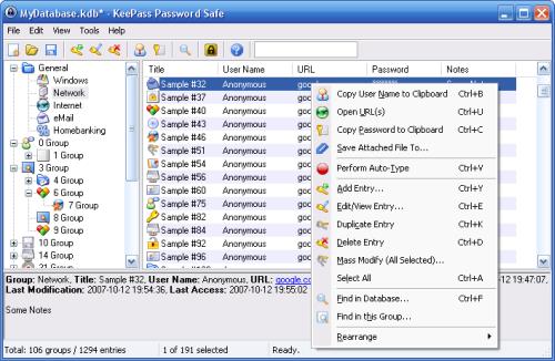 Nedostatkom užitočných prídavných funkcií však tento program ani zďaleka netrpí. Heslá je možné zoraďovať do skupín, podskupín, podpodskupín, atď. (Ku každej skupine, alebo heslu môžete priradiť pre lepšiu orientáciu buď jednu z integrovaných ikon, prípadne si vybrať vlastnú, ktorá bude uložená v databáze.)