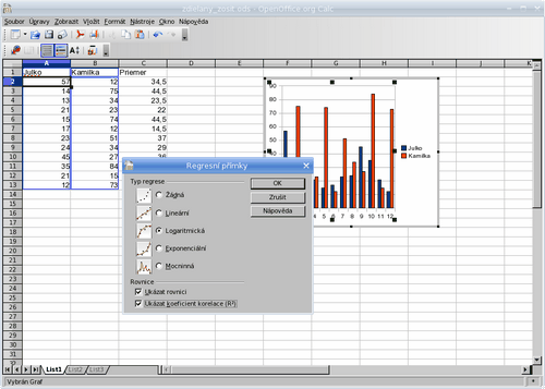 Ďalšie novinky boli pridané do oblasti tvorby grafov, kde bola pridaná veľmi žiadaná funkcia vloženia nielen regresnej krivky, ale OpenOffice.org dokáže vypočítať a vložiť aj jej vzorec, korelačný koeficient, do grafu môžeme teraz vkladať aj rozdiely oproti predpokladaným hodnotám a pod.