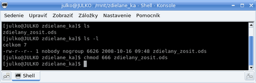 Pravdaže, pri zdieľaní nesmieme zabudnúť ani na prístupové práva skupiny používateľov alebo ostatných používateľov k súboru (pre zápis), pretože inak z druhého počítača nebudeme môcť súbor upravovať. Pri otváraní zdieľaného súboru sa zároveň v príslušnom adresári vytvorí súbor „.~sharing.MENO_SUBORU.odt“, ktorý musí mať tak isto právo pre zapisovanie pre všetkých používateľov, ktorí sú súborom môžu pracovať.