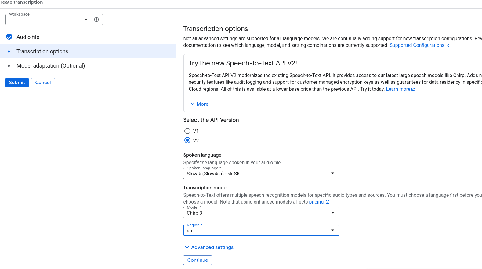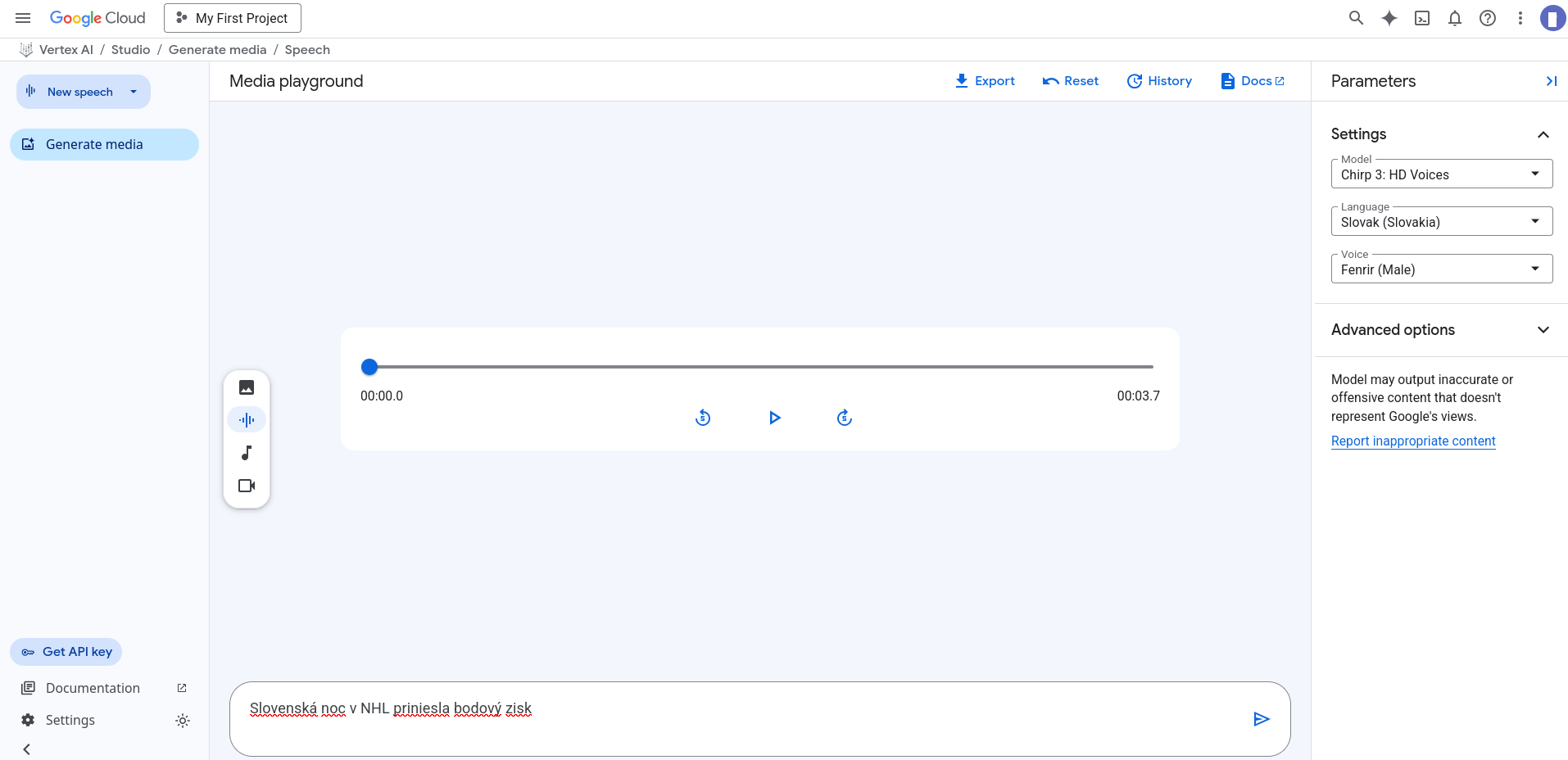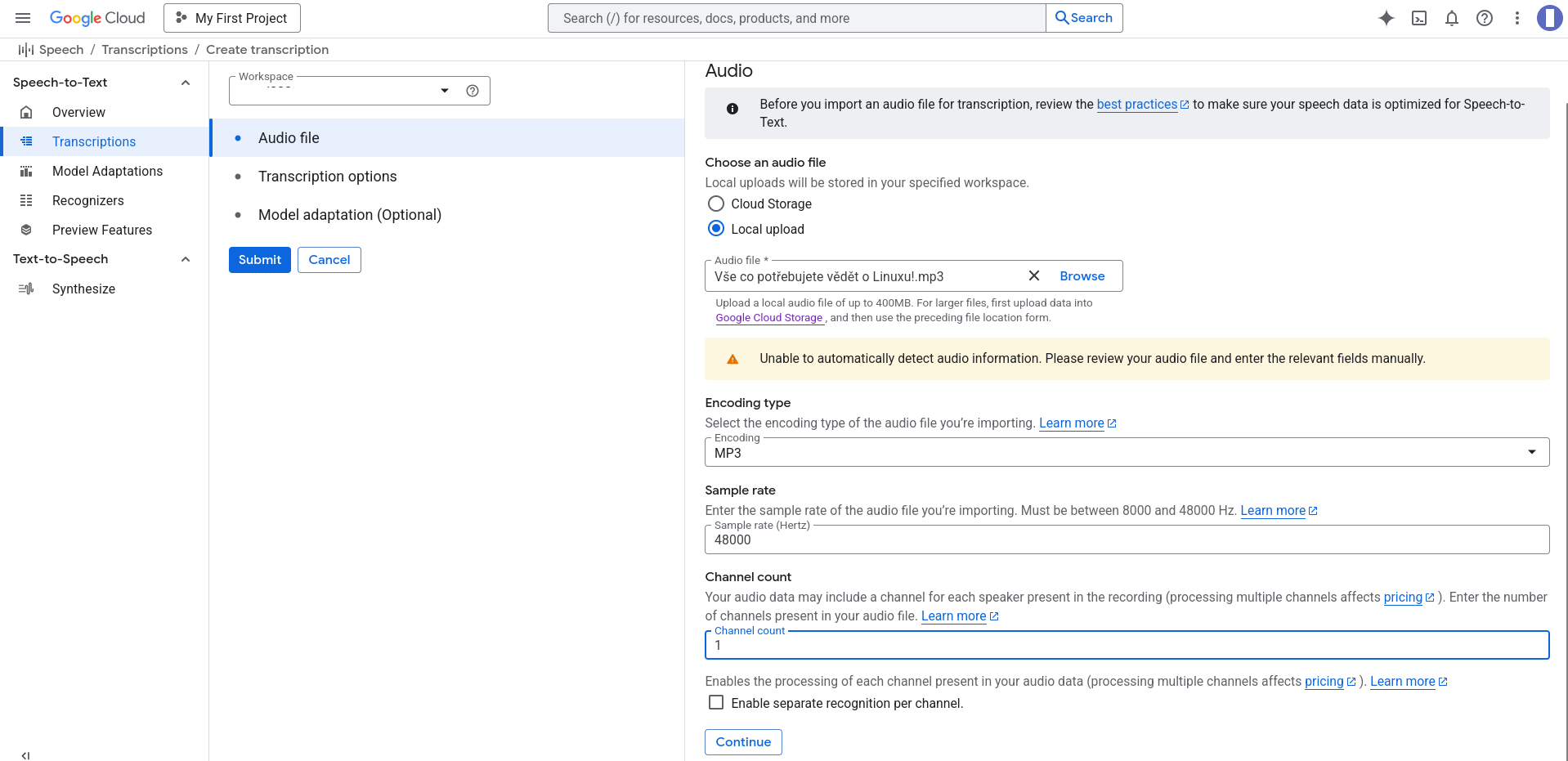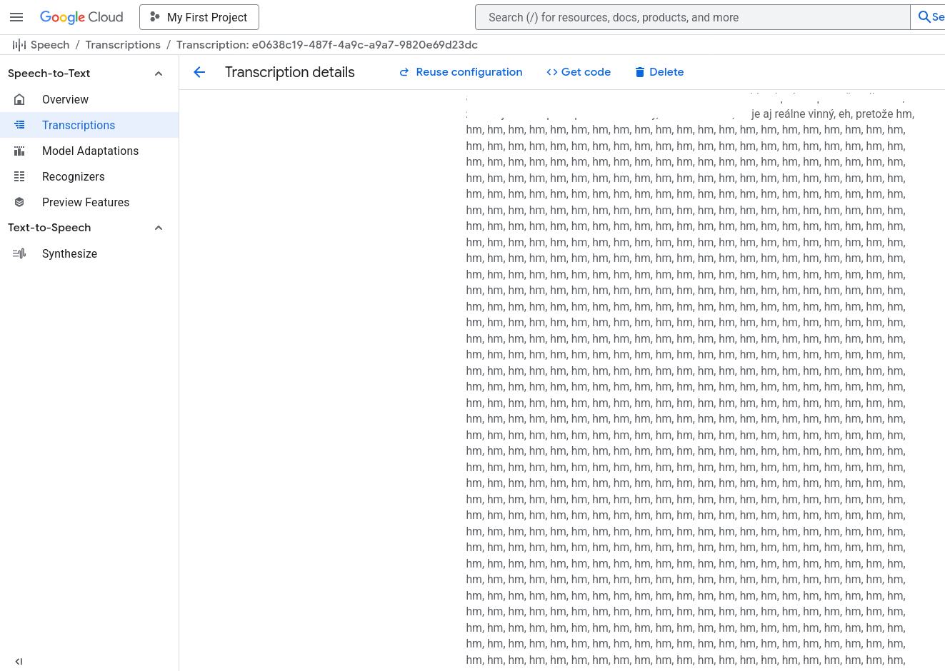 AI prevod Reči na Text. Recenzia. Google Cloud Console