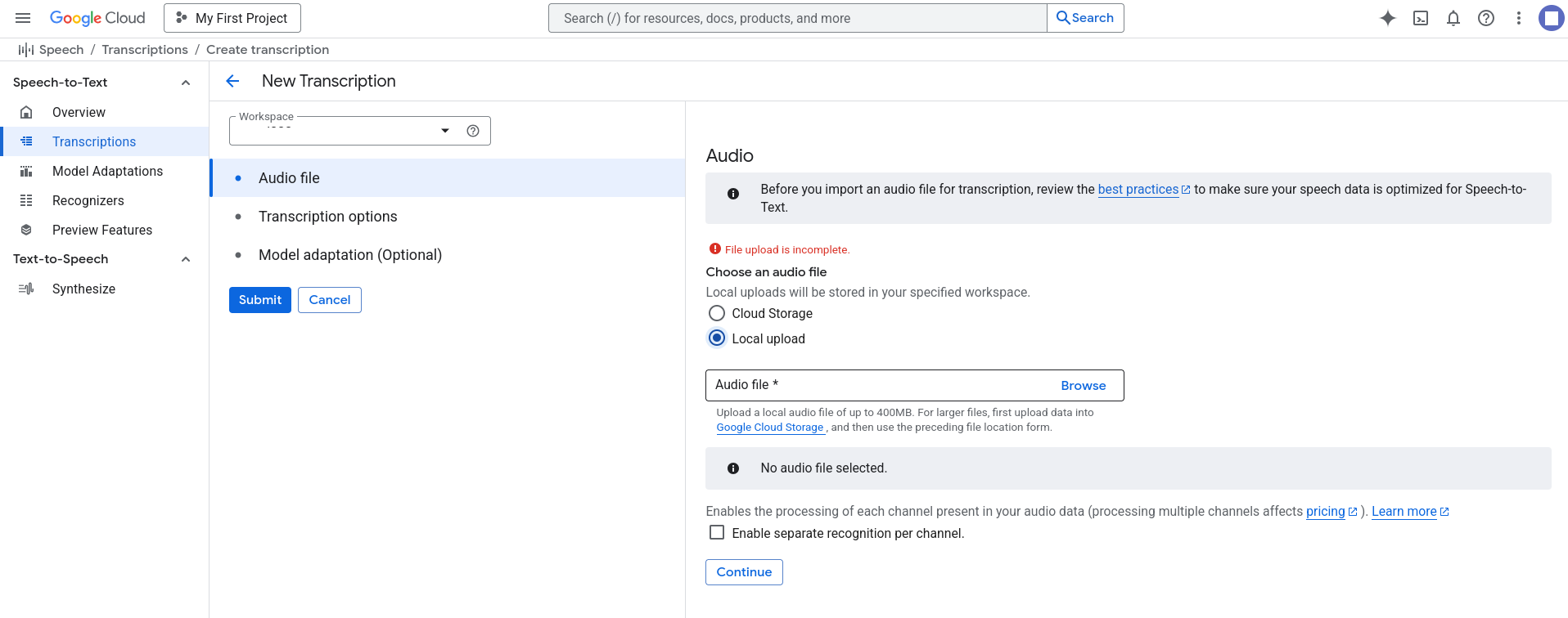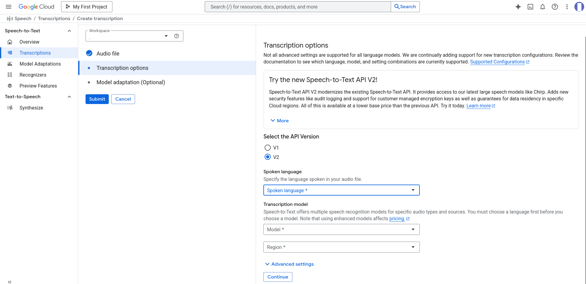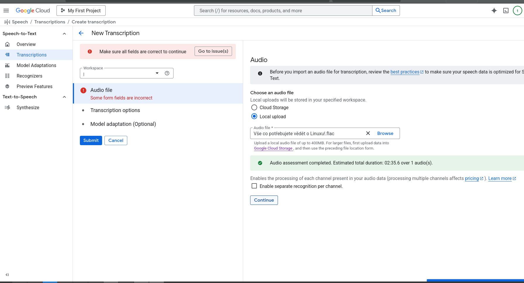AI prevod Reči na Text. Recenzia. Google Cloud Console
