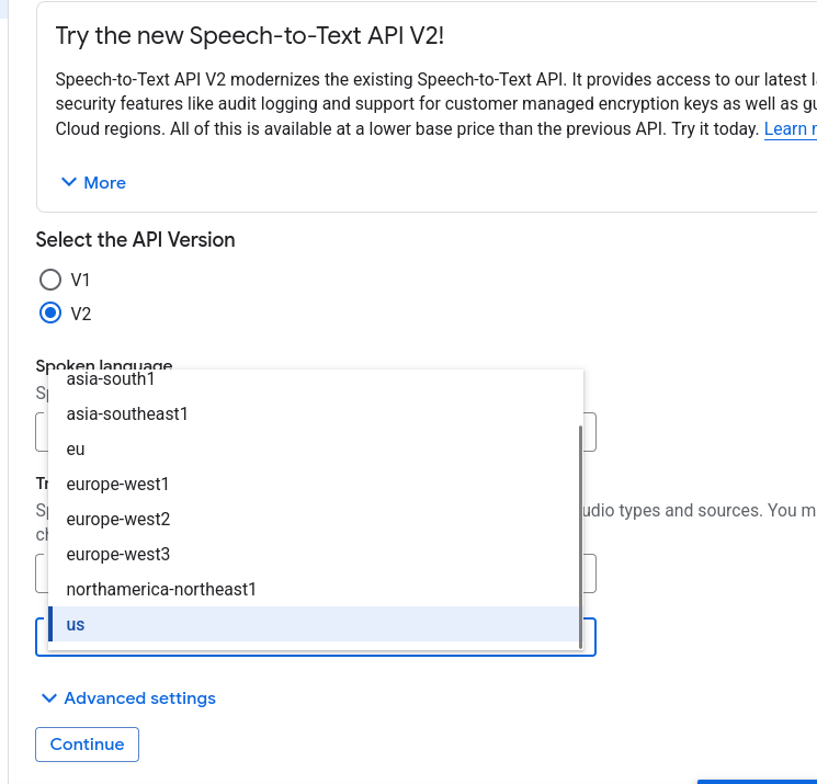 Čo to znamená možnosť europe-west3, europe-west2, eu, europe-west1, v službe Google Cloud STT Chirp 3?