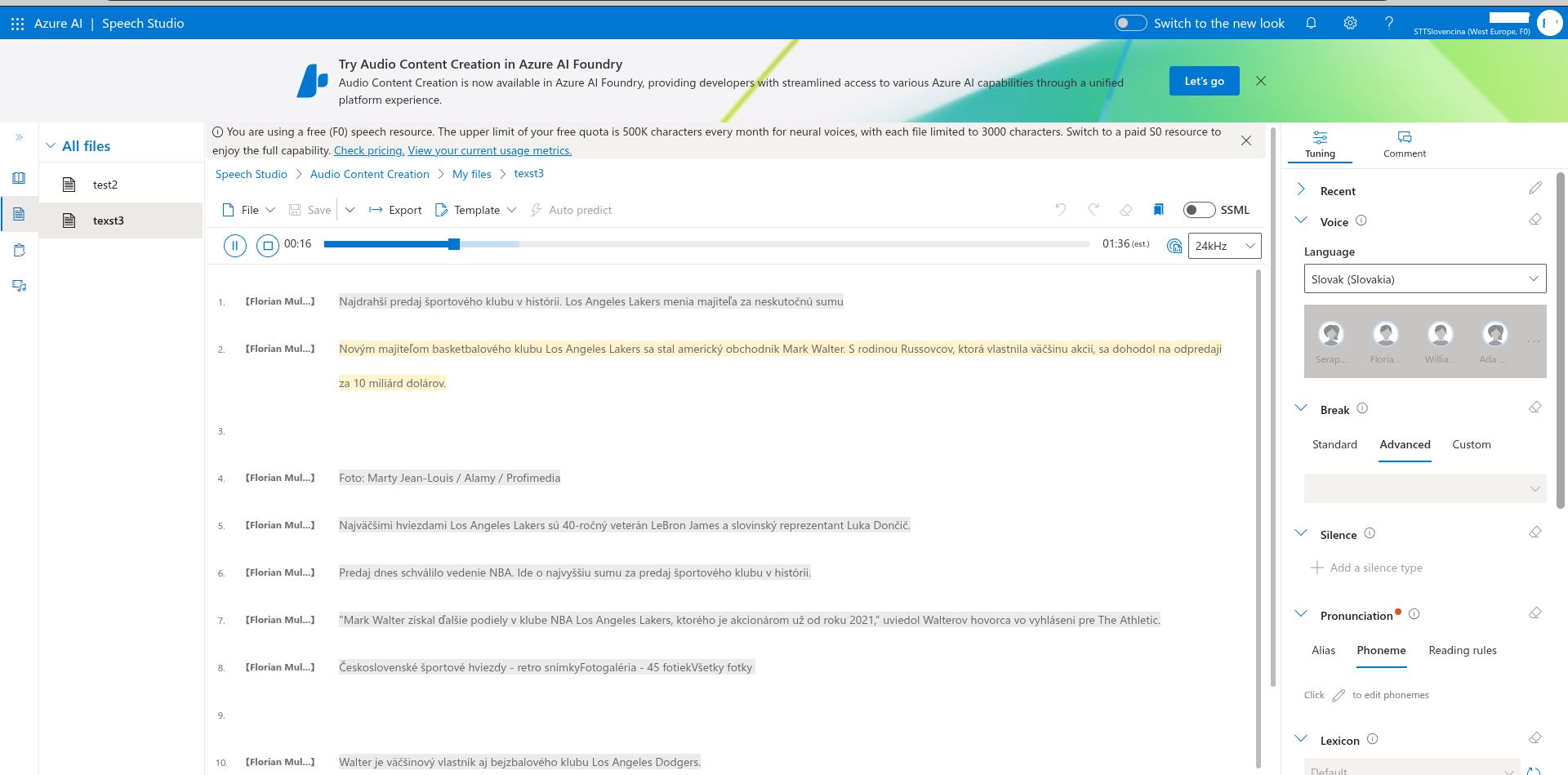 Čo je použiteľné je prevod textu na reč a to aj s grafickým rozhraním. Preto mám v článku viac screenshotov o tejto službe
