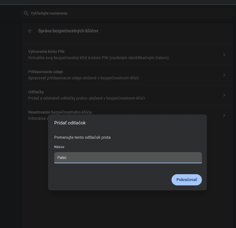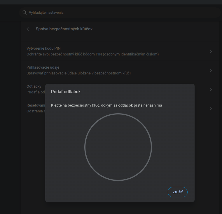 Najjednoduchšie nastavenie FIDO2 bolo pre účel web prihlásenia.