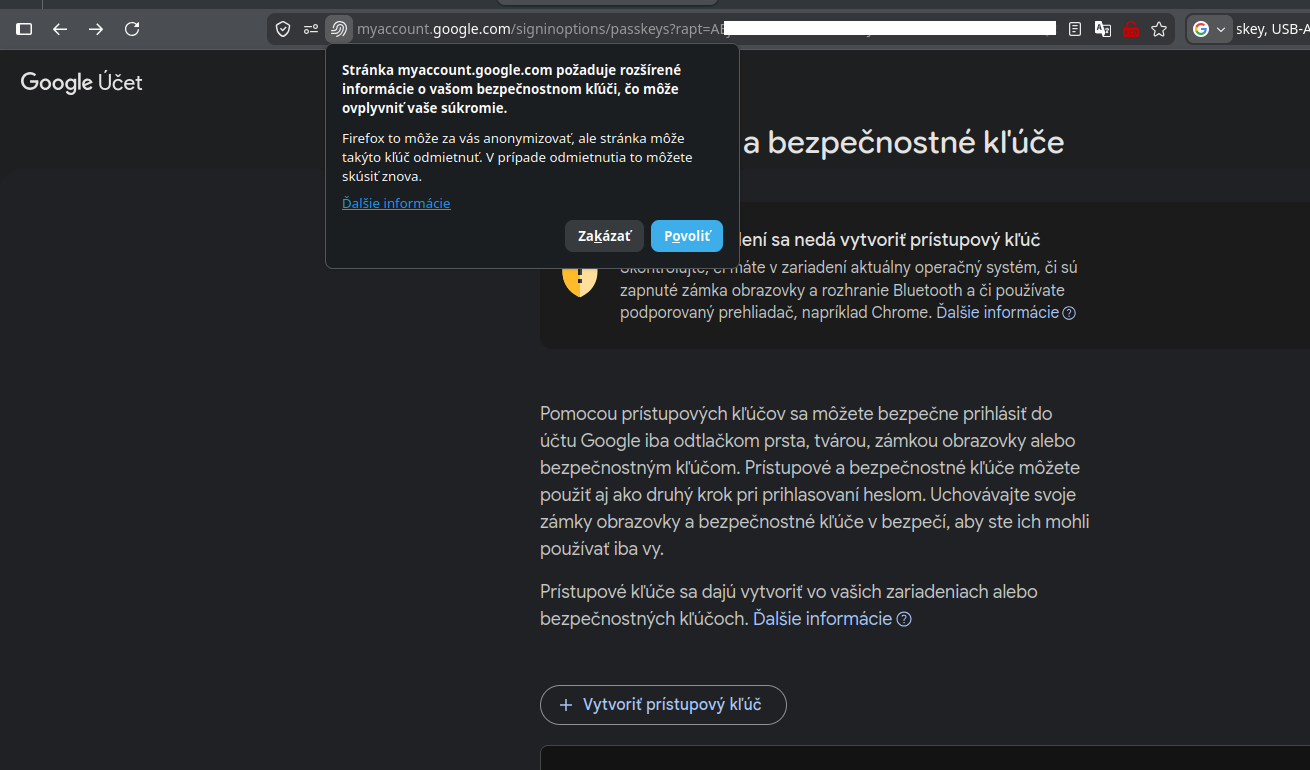 Firefox zobrazí vyskakovacie okno (systémovú výzvu). Kľúč na vašom USB portu začne blikať.
