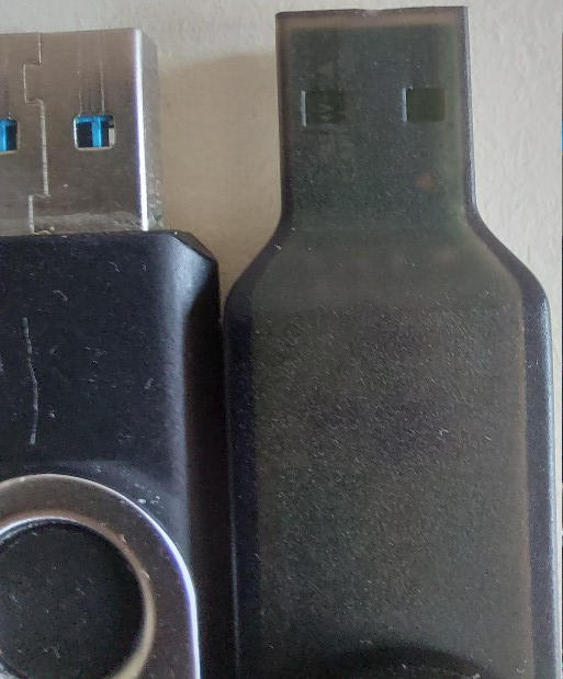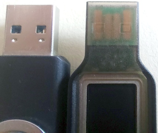 Konektorová časť male USB-A ktorá býva bežne z kovu, je tu z plastu čo nepôsobí dobrý dojmom – zrejme z dôvodu lepšej viditeľnosti signalizačných letiek. Neviem akú životnosť môže mať takýto plast, avšak niektoré špeciálne plasty môžu mať niektoré mechanické vlastnosti ako oderuvzdornosť porovnateľnú s kovom.