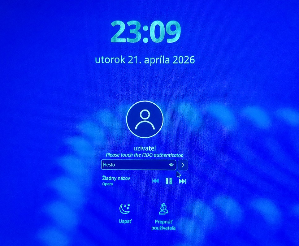 Nakoľko mám nastavené šifrovanie home priečinku pomocou fscrypt, nemohol som použiť kľúč na prihlásenie. Je ho ale možné použiť na odomknutie zamknutej obrazovky, napr po uspaní PC a to som aj urobil.