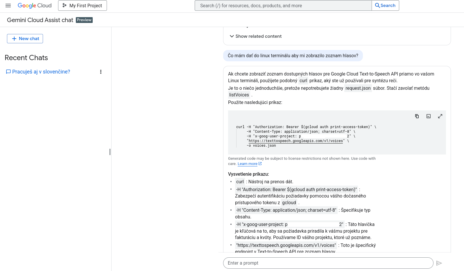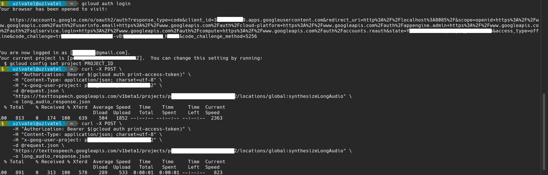 Google Cloud Console TTS. Prevod textu na reč cez API na Linuxe