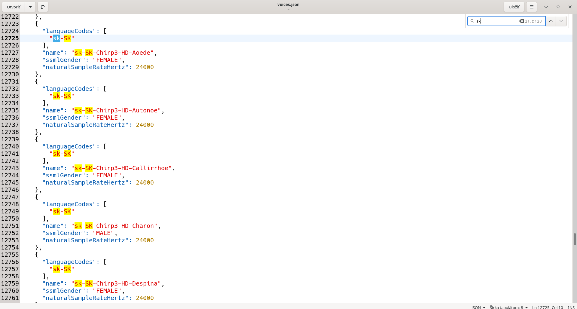 Obsah .json súboru. FLAC audio formát nepodporuje, tak som tam dal WAV formát. „LINEAR16“ je podkategória WAV