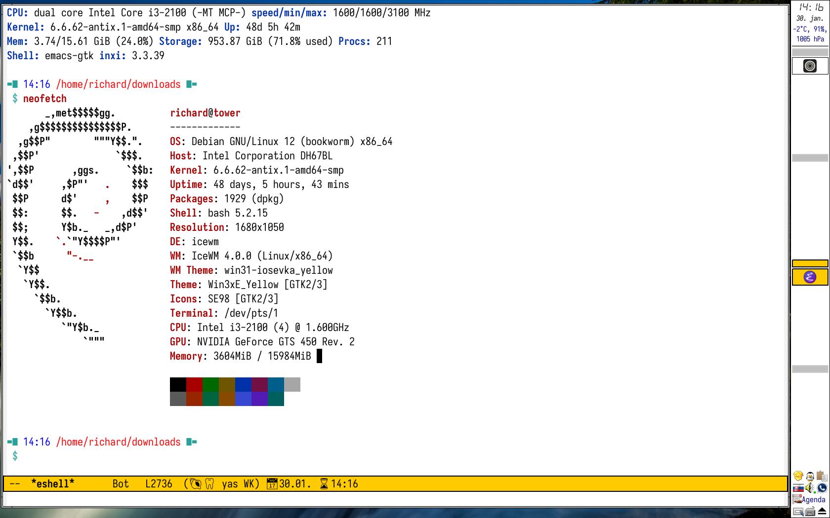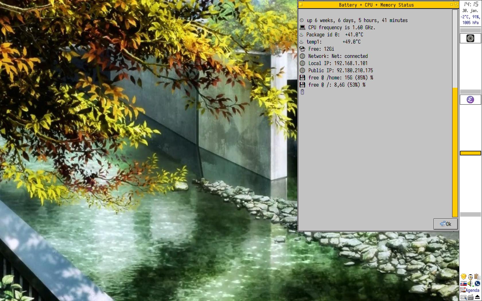 Takto som to používal roky, doslova desaťročia. OK, asi rok som používal i XFCE, lebo som sa nechal „ošáliť“ transparentným panelom. Ale odvtedy len a len IceWM, aj v časoch, keď som nepoužíval antiX, ktorý ho má ako jeden z predvolených (+ Fluxbox, Herbstluftwm, JWM,…).