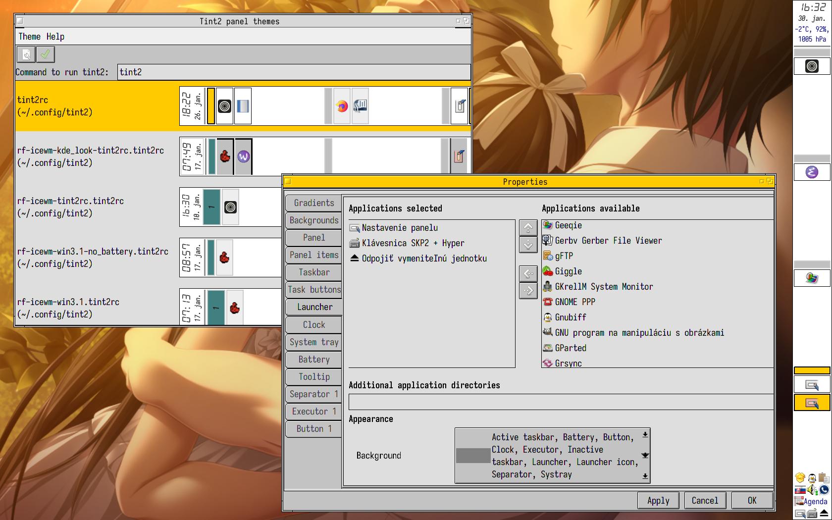 | Obr. č. 5: tint2conf — pohodlné GUI. |